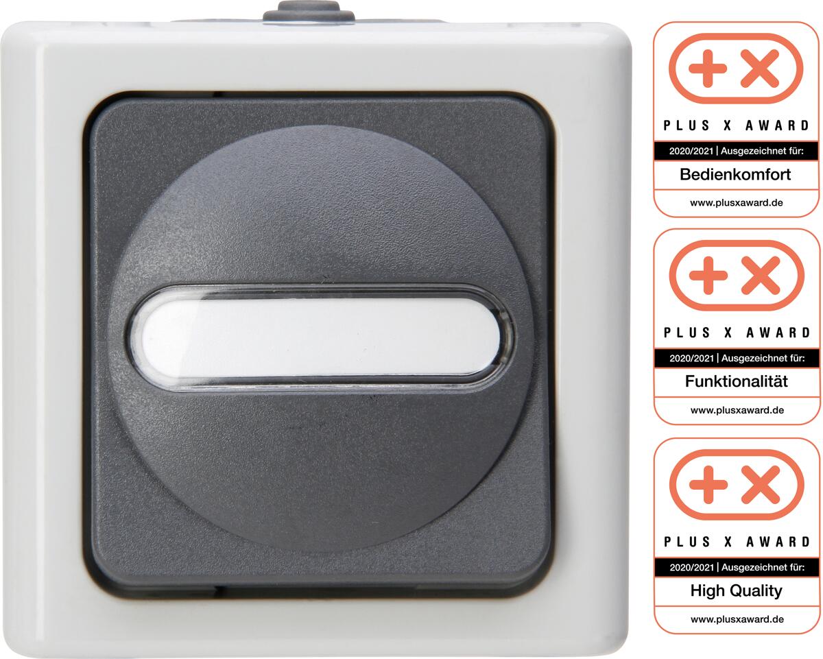 Kopp Taster Nautic, Einzeltaster beleuchtet mit Schutzart IP44, in Grau & Anthrazit