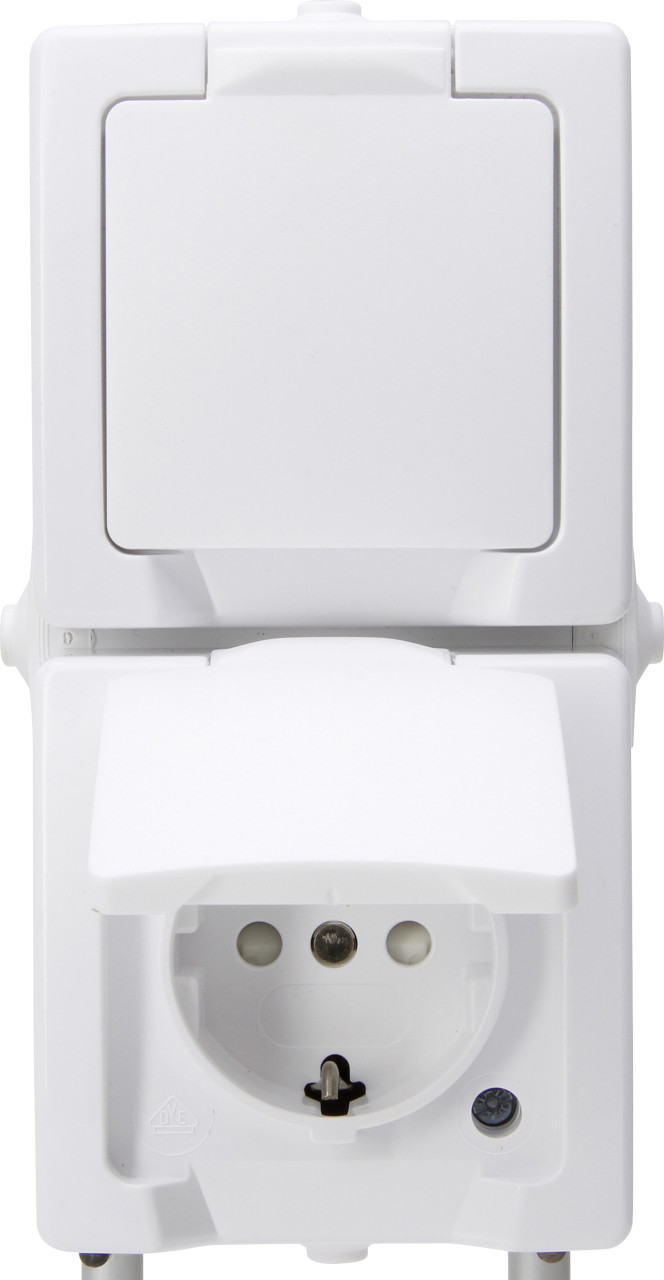 Kopp proAQA Aufputz-Feuchtraum Aus-/Wechselschalter Steckdosenkombination waagerecht