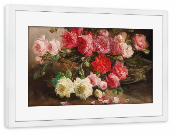 Poster mit Rahmen weiß "Korb mit Rosen" artboxONE - Natur,Floral,Liebe,Für Mama