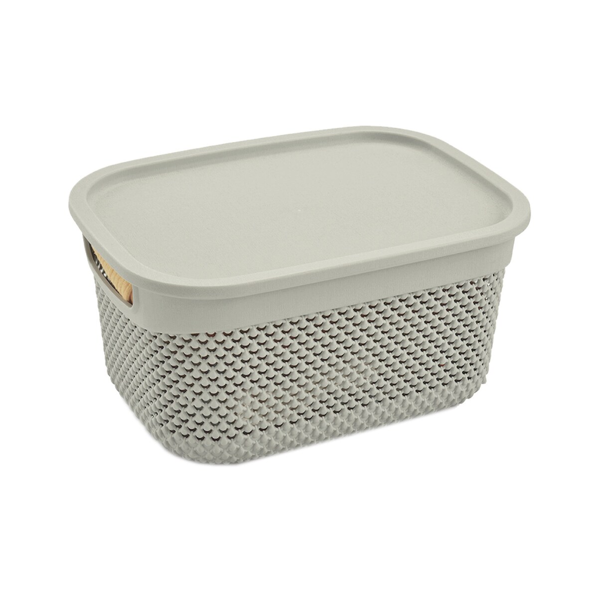 7H SEVEN HOUSE Mittlerer rechteckiger Korb mit Deckel, 6,6 Liter, Grau, 7house