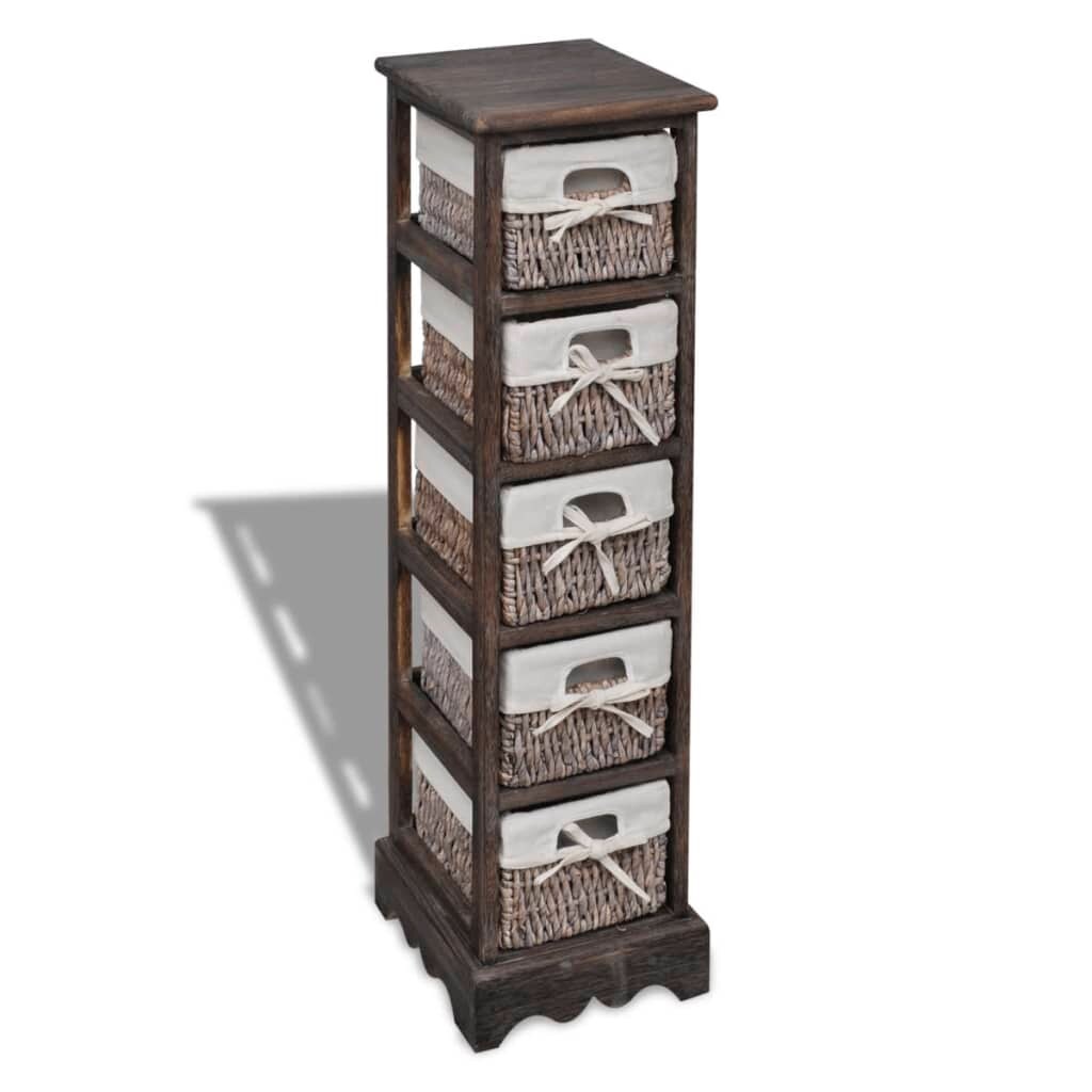 vidaXL Korbregal Holz mit 5 Körben Braun