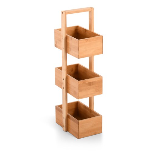 Holzregal & Standregal mit 3 Fächern, Bambus, schmales Design, Badregal, Küchenregal aus Holz mit 3 Körben, Korbregal aus Holz| Raburg Kori
