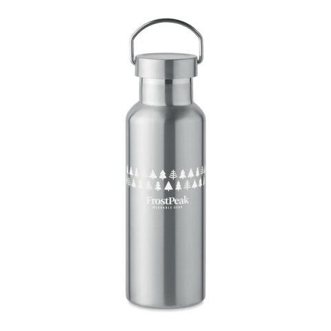 Werbeartikel Edelstahl Trinkflasche 500 ml doppelwandig recycelt Korkboden Henkeldeckel BPA-frei auslaufsicher mit Henkel – transparent grau – mit