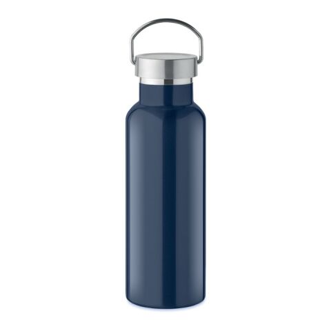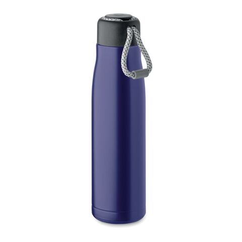 Werbeartikel Edelstahl Trinkflasche 500 ml doppelwandig recycelt Korkboden Henkeldeckel BPA-frei auslaufsicher mit Trageschlaufe – marineblau – mit