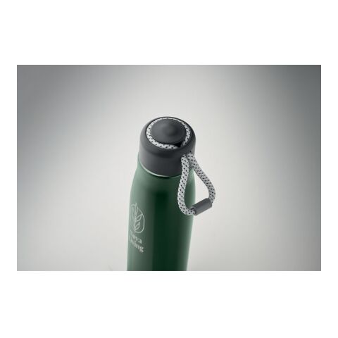 Werbeartikel Edelstahl Trinkflasche 500 ml doppelwandig recycelt Korkboden Henkeldeckel BPA-frei auslaufsicher mit Trageschlaufe – dunkelgrün – mit
