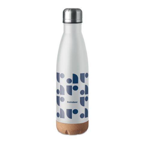 600 ml Edelstahl-Isolierflasche doppelwandig mit abgesetztem Korkboden & auslaufsicher weiß – mit Logo bedruckt