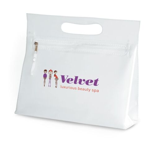 Werbeartikel Transparente Kosmetiktasche – weiß – mit Logo bedruckt