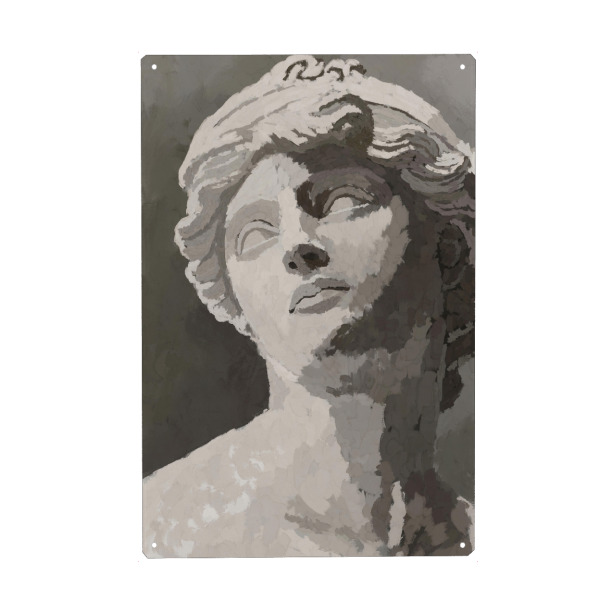 Metall Poster "Silent Kouros" artboxONE - Menschen - Statue,Rom,Römisch,Dekorativ,Mann,Granit,Grau,Marmor,Treechild,Illustration,Gesicht,Struktur