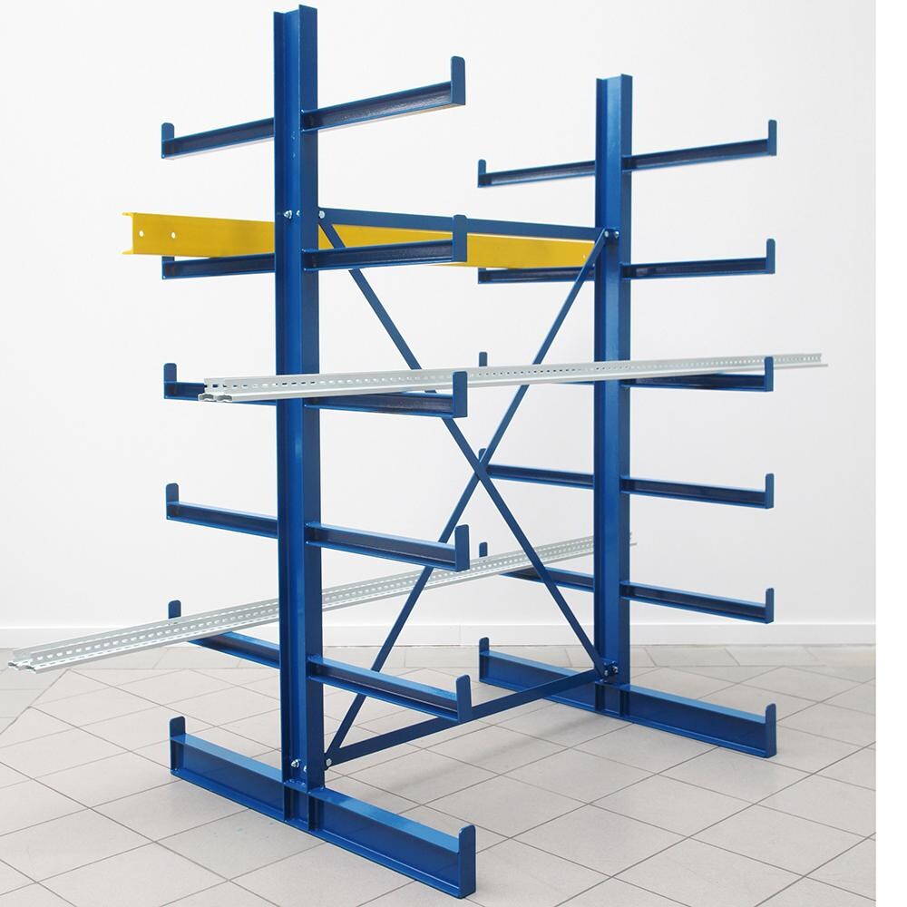 Meta Kragarmregal Grundregal IPE120 doppelseitig 2500 x 1000 x 1000 mm Enzianblau + 8 Kragarmen je Ständer