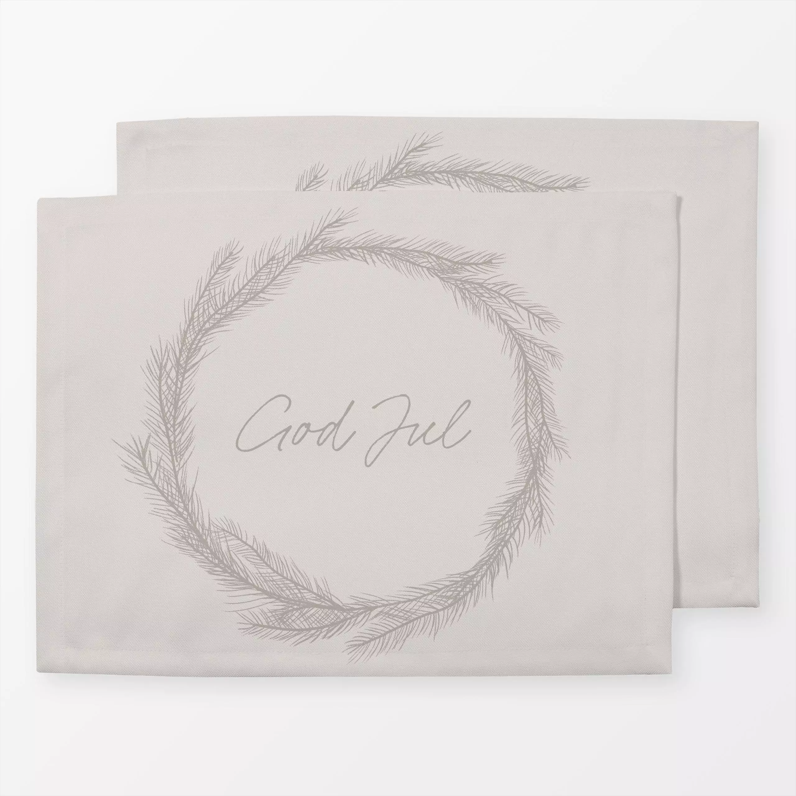 Tischset Beige God Jul Krans - Sprüche & Schriftzüge, Weihnachten - von „textilwerk x hejmelig"; beige, kranz, weihnachtskra...