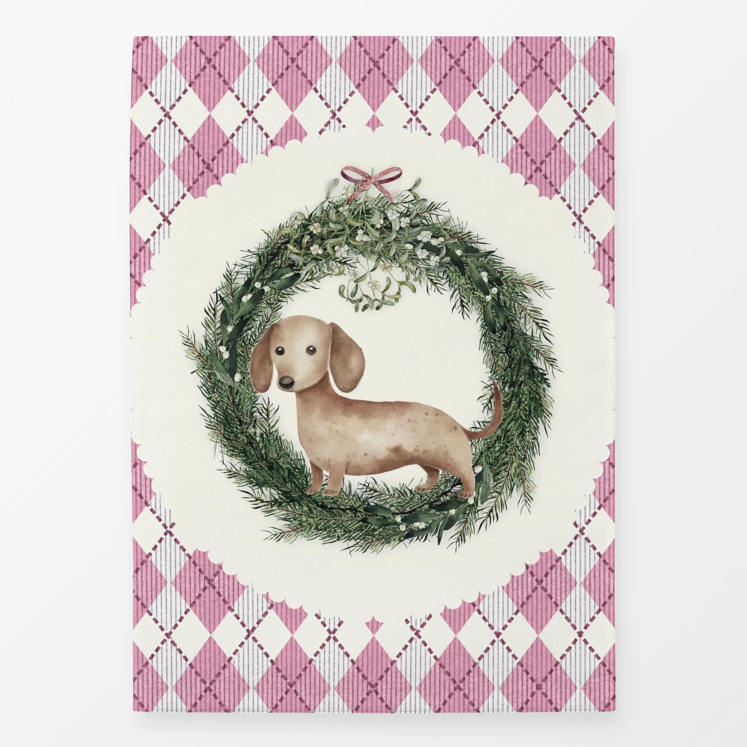 Geschirrtücher Weihnachtsdackel Raute - Tiere, Weihnachten - von „Monika Strigel"; Wasserfarben, Weihnachten, niedlich, kran...