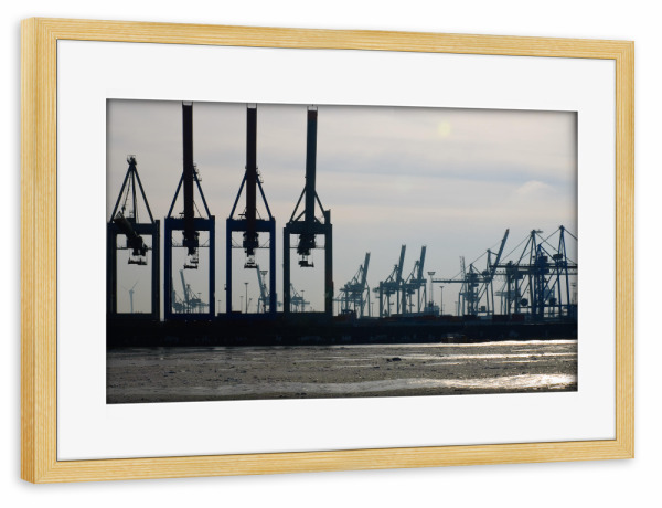 Poster mit Rahmen kiefer "Kranlandschaft" artboxONE - Städte / Hamburg - Transport,Hafen,Verladen,Hamburg hafen,Container,Kran