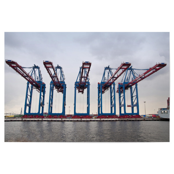 Poster "Five Cranes" artboxONE - Städte / Hamburg - Transport,Hafen,Verladen,Hamburg hafen,Container,Kran