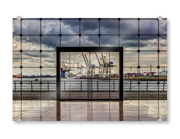 Acrylglasbild "Das Tor zur Welt" artboxONE - Architektur - Hafen,Kran,Hamburg,Handel,Schiffe,Geometrie