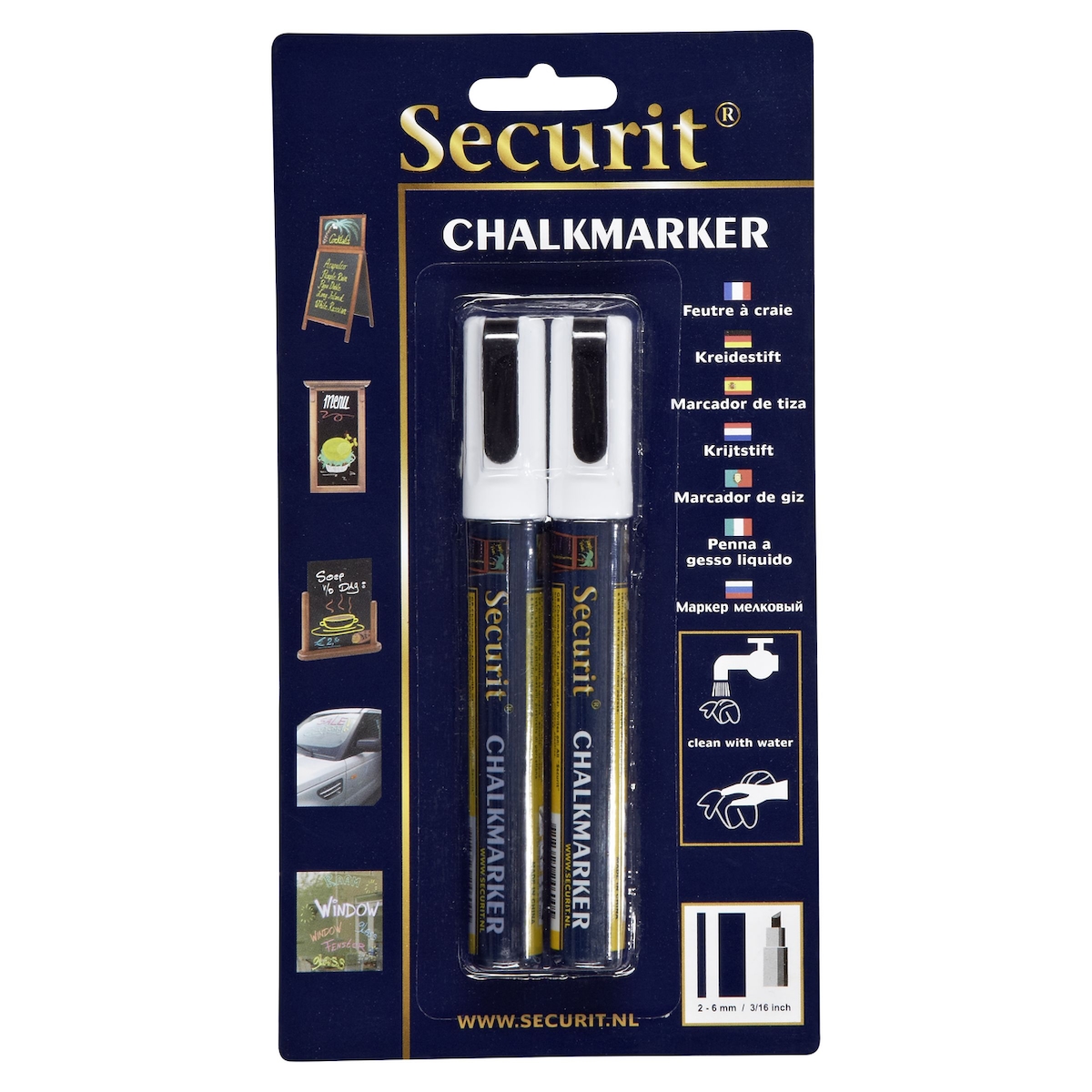 Securit Kreidemarker WATERPROOF LARGE 2er Etui weiß