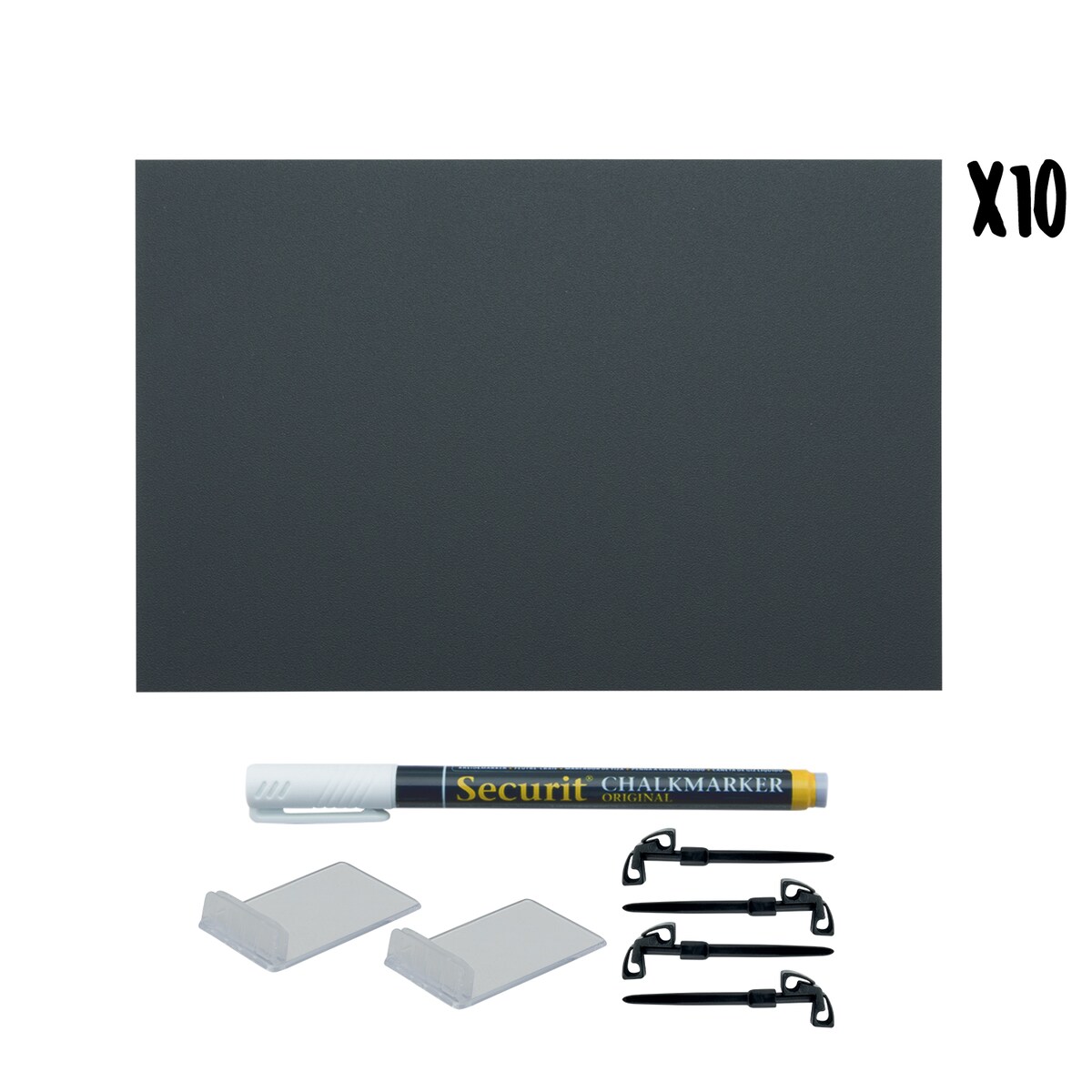 Securit 10er-Set Tischtafeln "Tags" A5 - Schwarz - Weißer Kreidestift und Zubehör inklusive