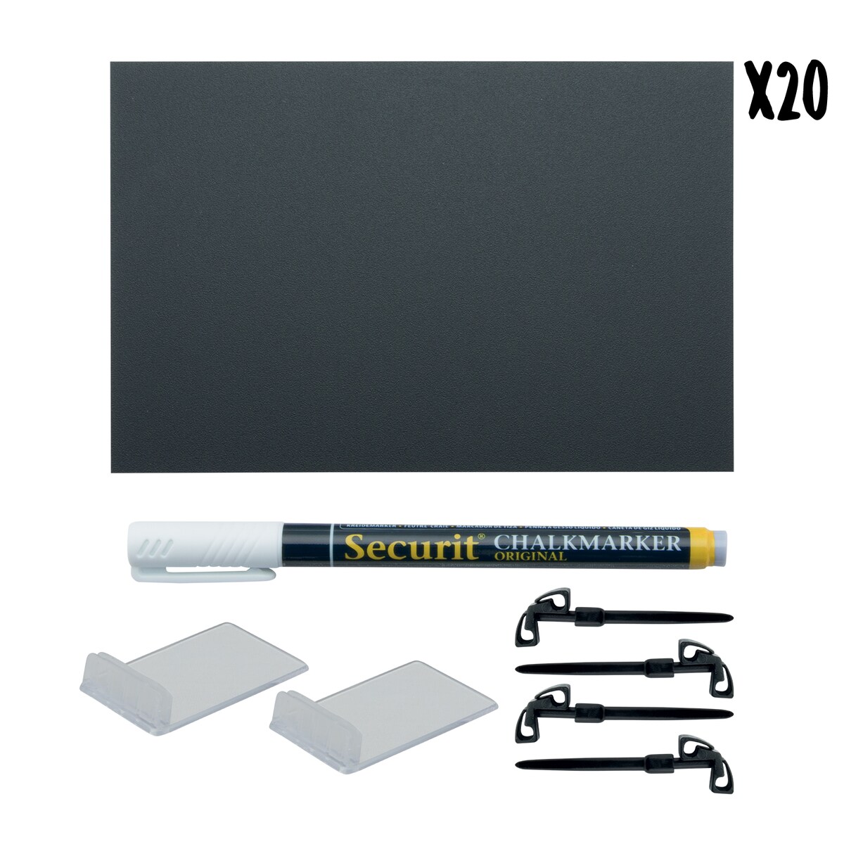 Securit 20er-Set Tischtafeln "Tags" A6 - Schwarz - Weißer Kreidestift und Zubehör inklusive