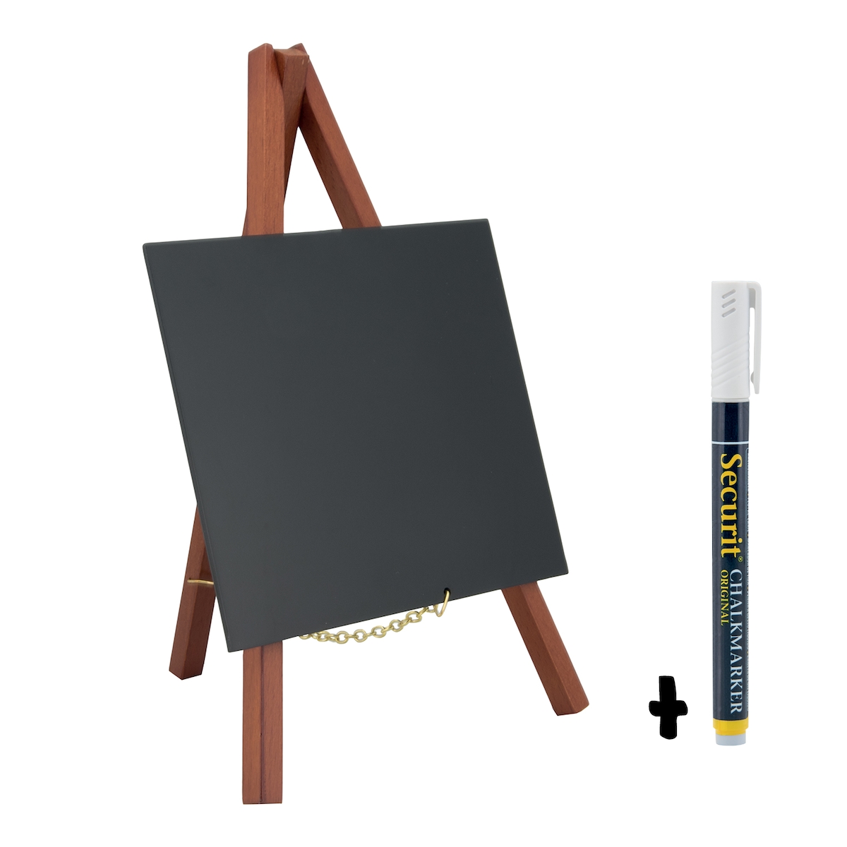 Securit Mini-Tischtafel auf Staffelei – Holz mit mahagonifarbenem Lack-Finish – Kreidestift inklusive