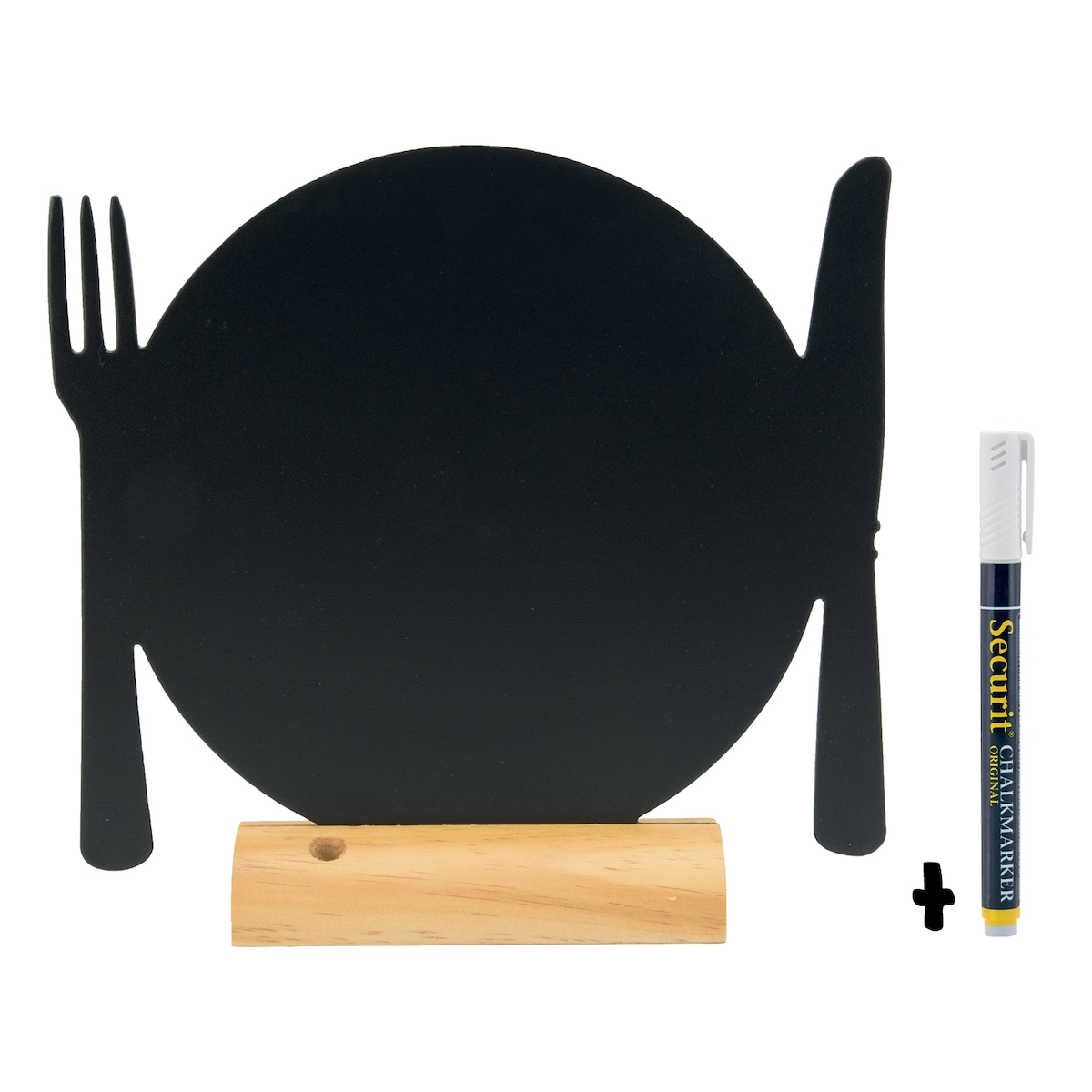 Securit Tischtafel - Teller-Silhouette - Holzsockel - Kreidestift inklusive