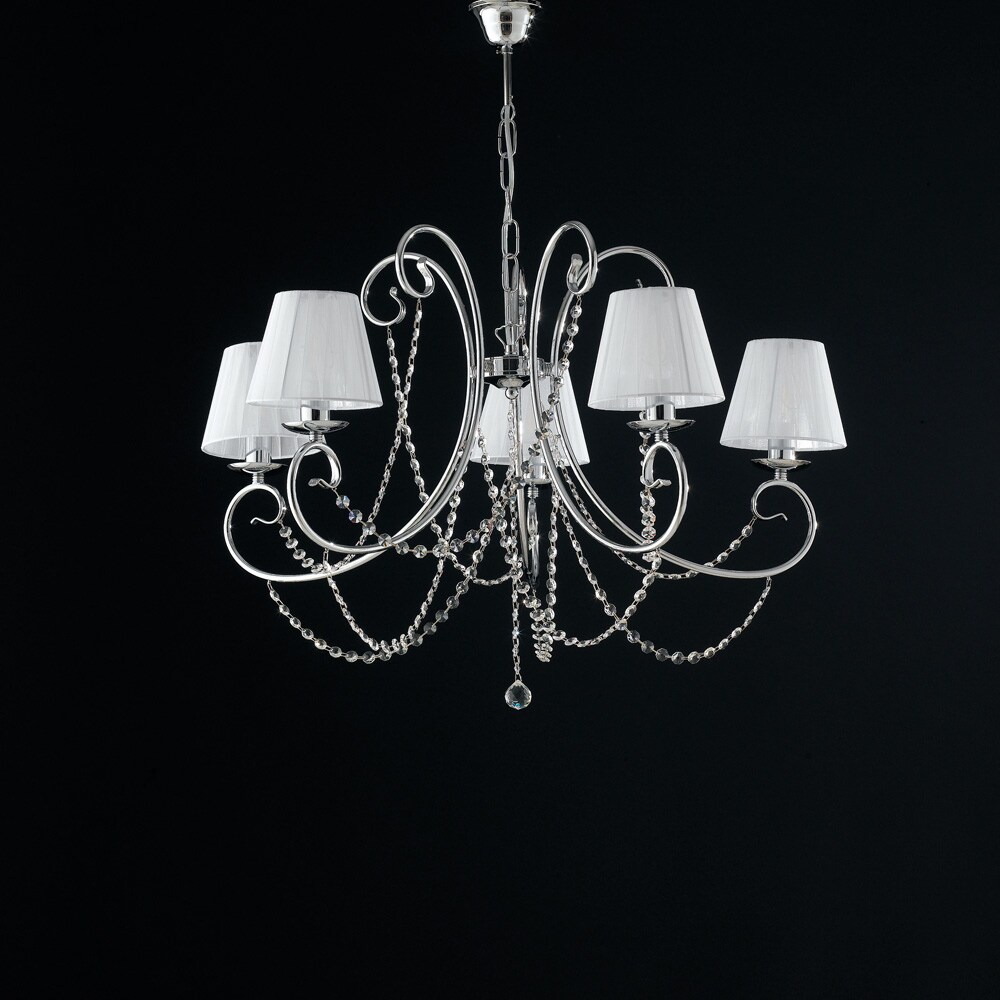 Bonetti Illumina Magda - 5-flammiger Kronleuchter aus verchromtem Eisen mit 115 Lampenschirmen - Ø72 - BL146-5-CR-PAR