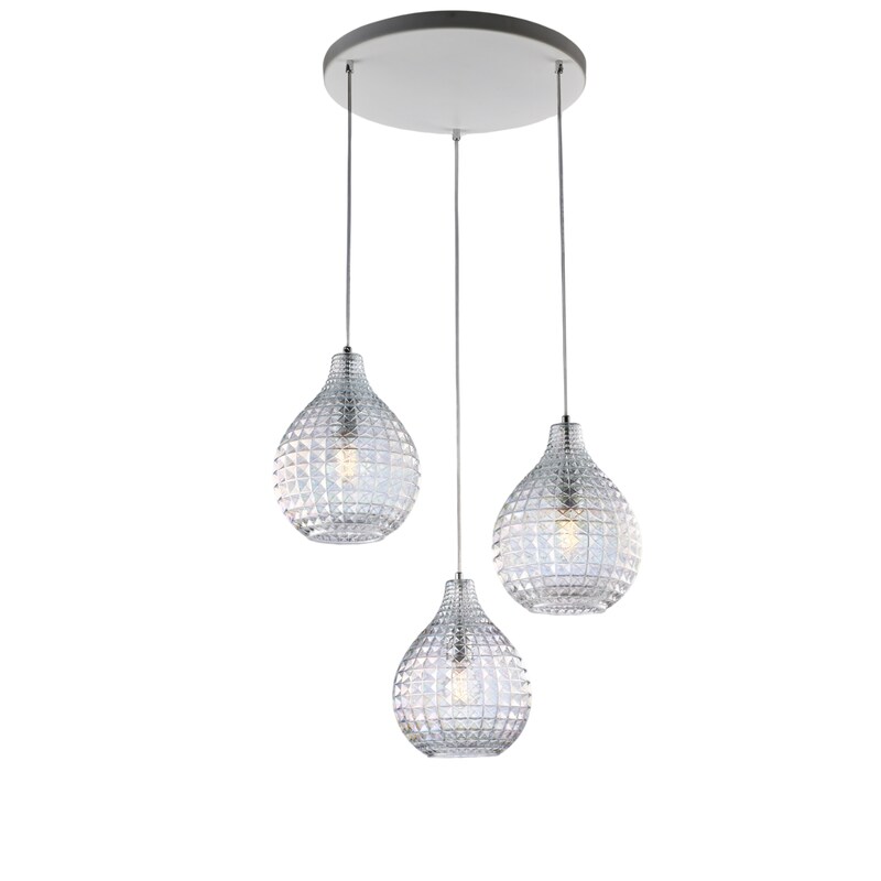 Belight - Lucy - Kronleuchter weiß, Shabby-Chic & PVC-Lampenschirme Ø16, Ø59, 3-flammig - BL184-3-BCO