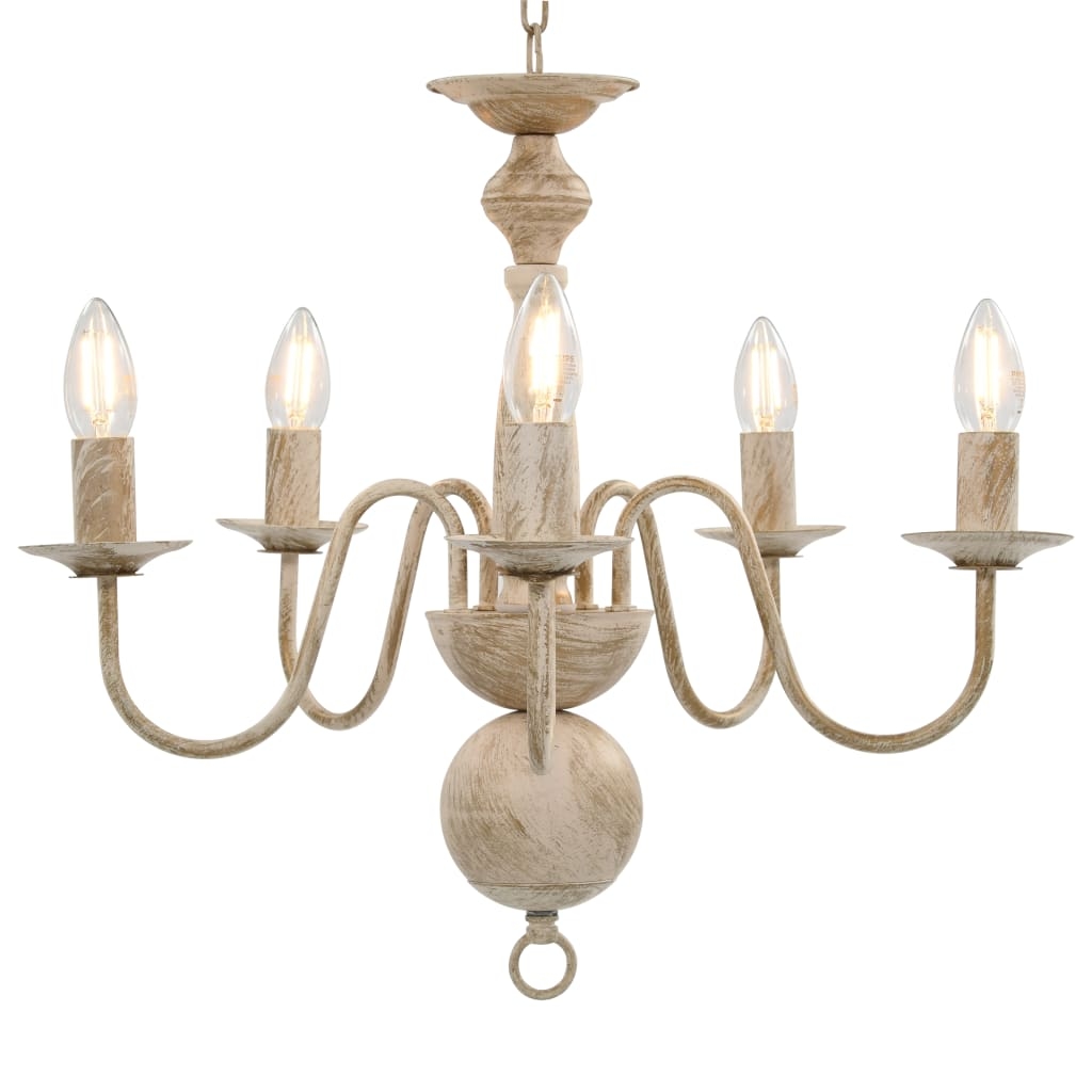 vidaXL Kronleuchter Antik Weiß 5×E14-Glühbirnen
