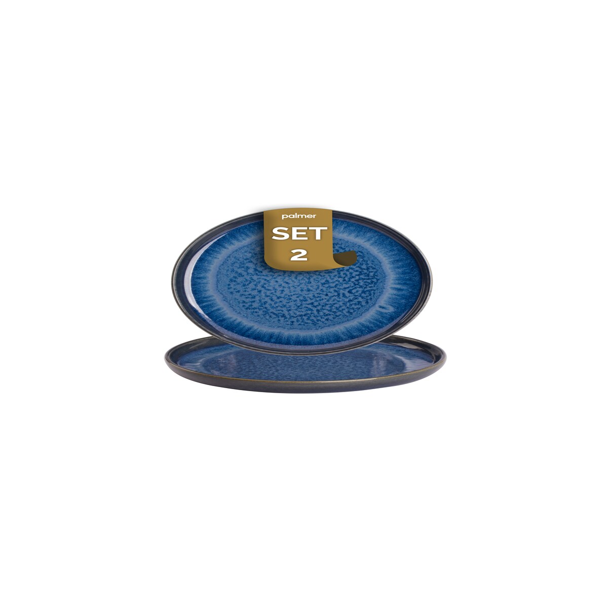 palmer Jory Teller flach - 2er-Set, Steinzeug, Ø 22 cm, blau braun, hoch glänzend, moderner Stil, für Frühstück, Kuchen oder als Servierteller