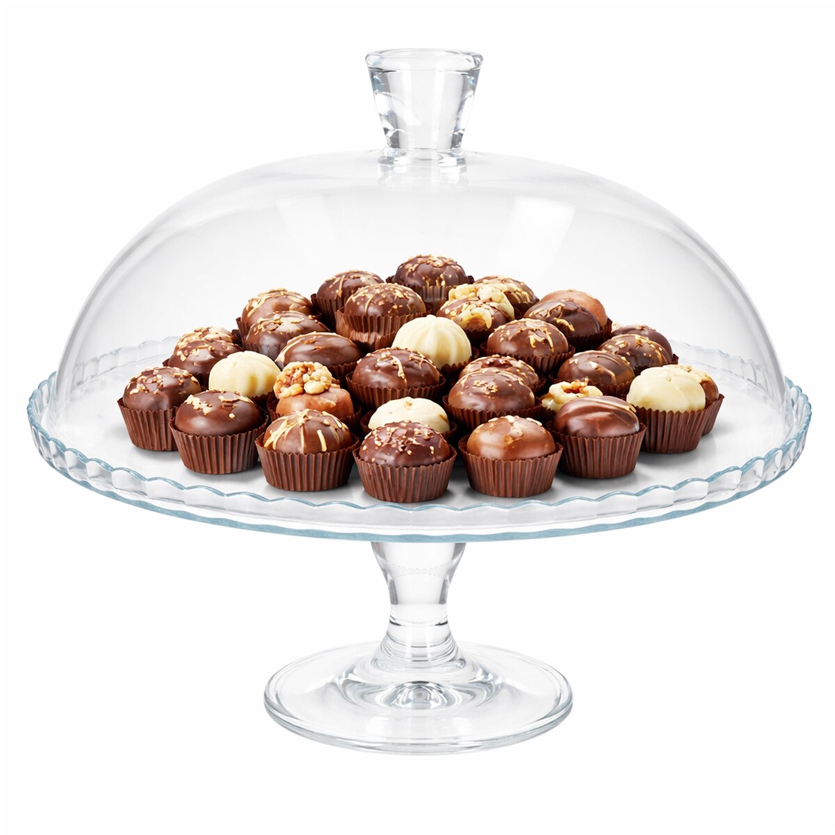 Arte Regal | Mini Pralinenständer - Servierplatte - transparent - Kuchenplatte - mit Standfuß - aus Glas - mit Glasglocke