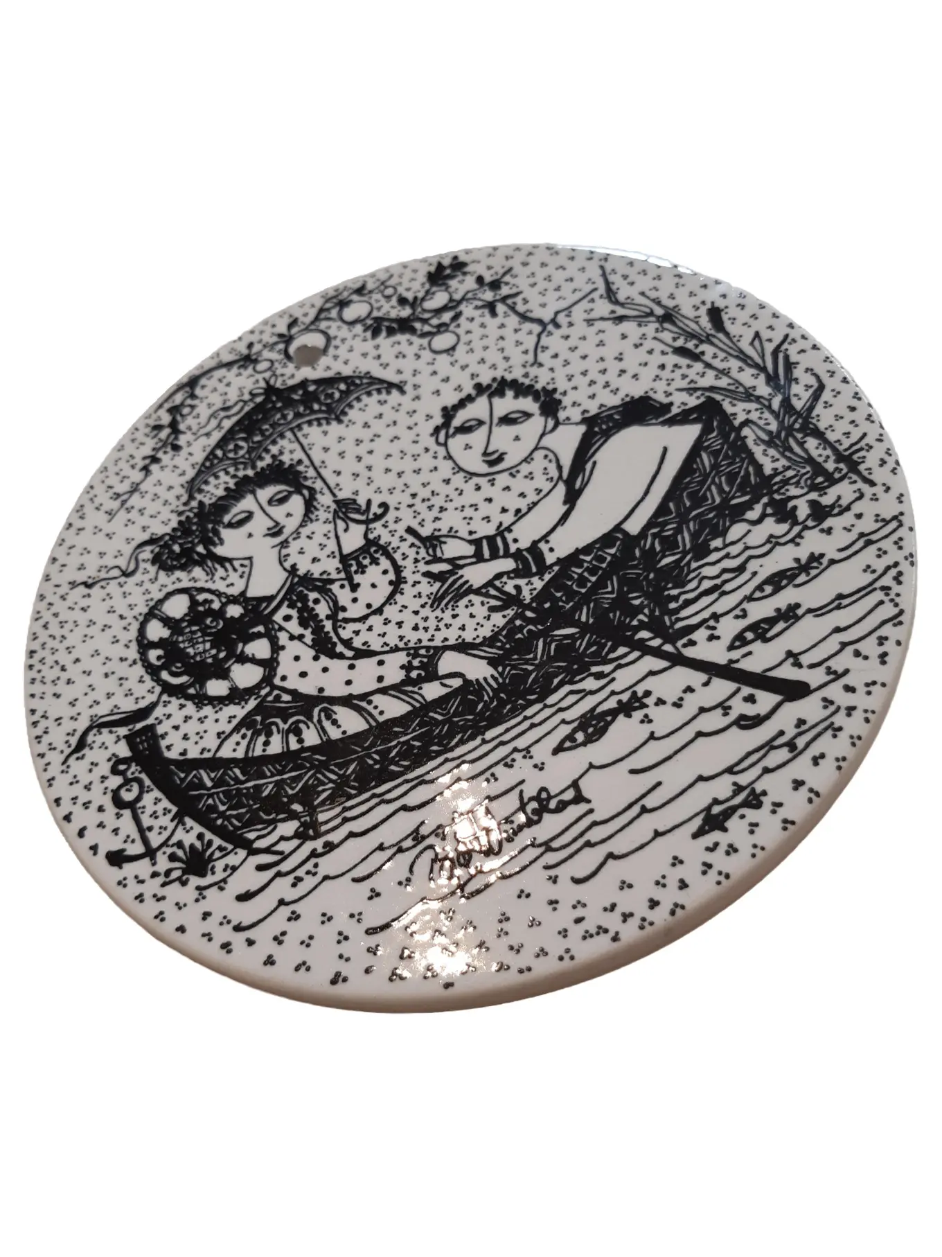 NYMØLLE Nymolle Nocturne Kuchenplatte Keramik Vintage Boot Motiv Weiß 16 cm