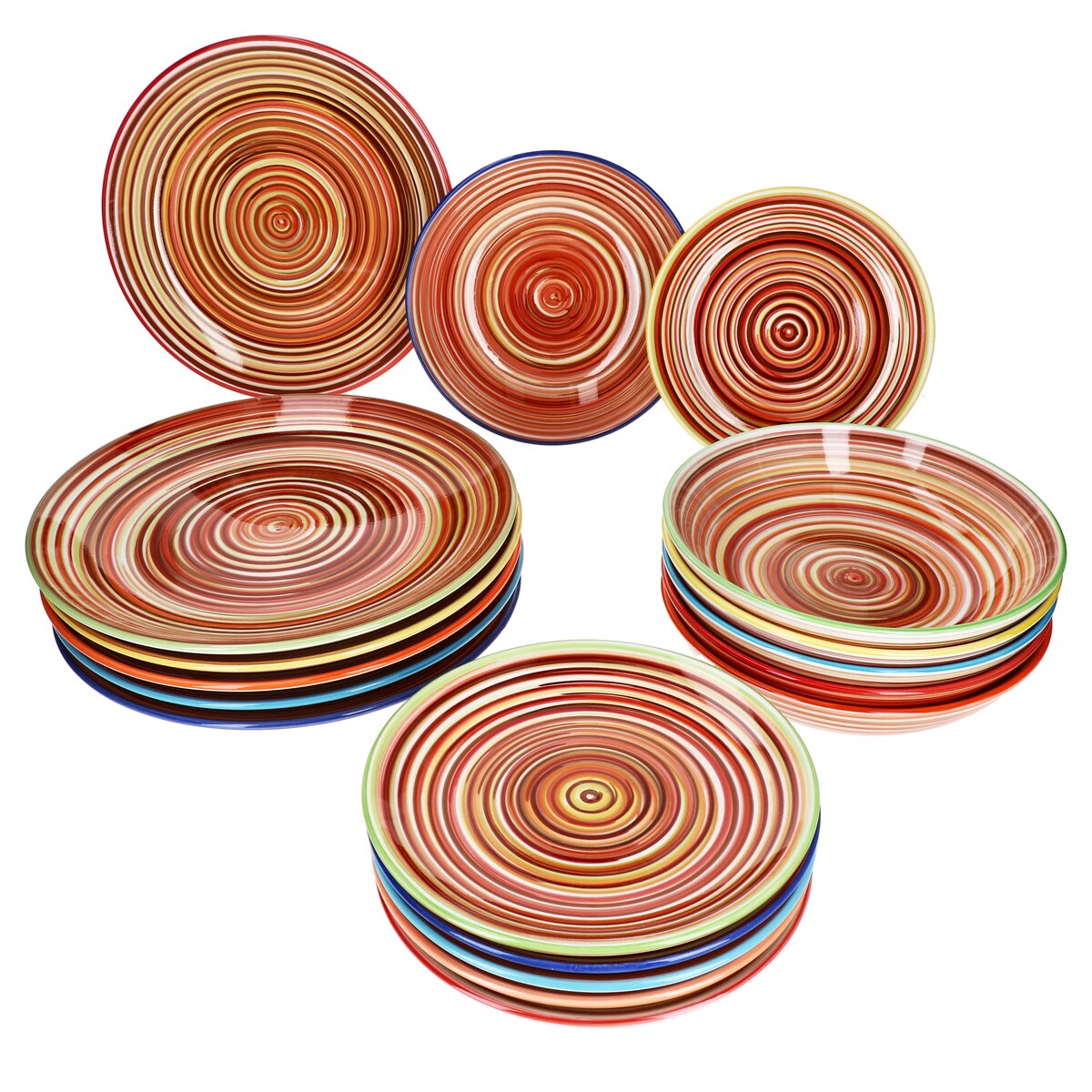18tlg. Tellerset Uni bunt Teller Essteller Suppenteller Kuchenteller Geschirr