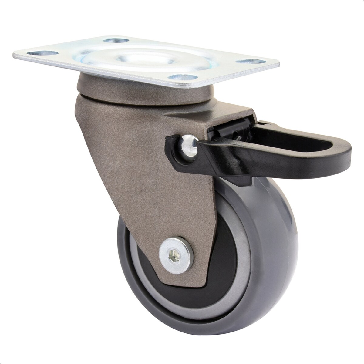 Bremsrolle im Nachlauf, Polyamid grau, Rueckenloch , Ø 100, Tragkraft 100, Gummiplast, Kugellager, Fadenschutz
