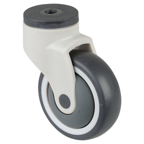 Kunststoff-Lenkrolle Rad Ø 100mm Gummi grau Radb. 32mm BH 137mm Kugellager Radk. Kunststoff mit Rückenloch Rückenl. Ø 12 5mm