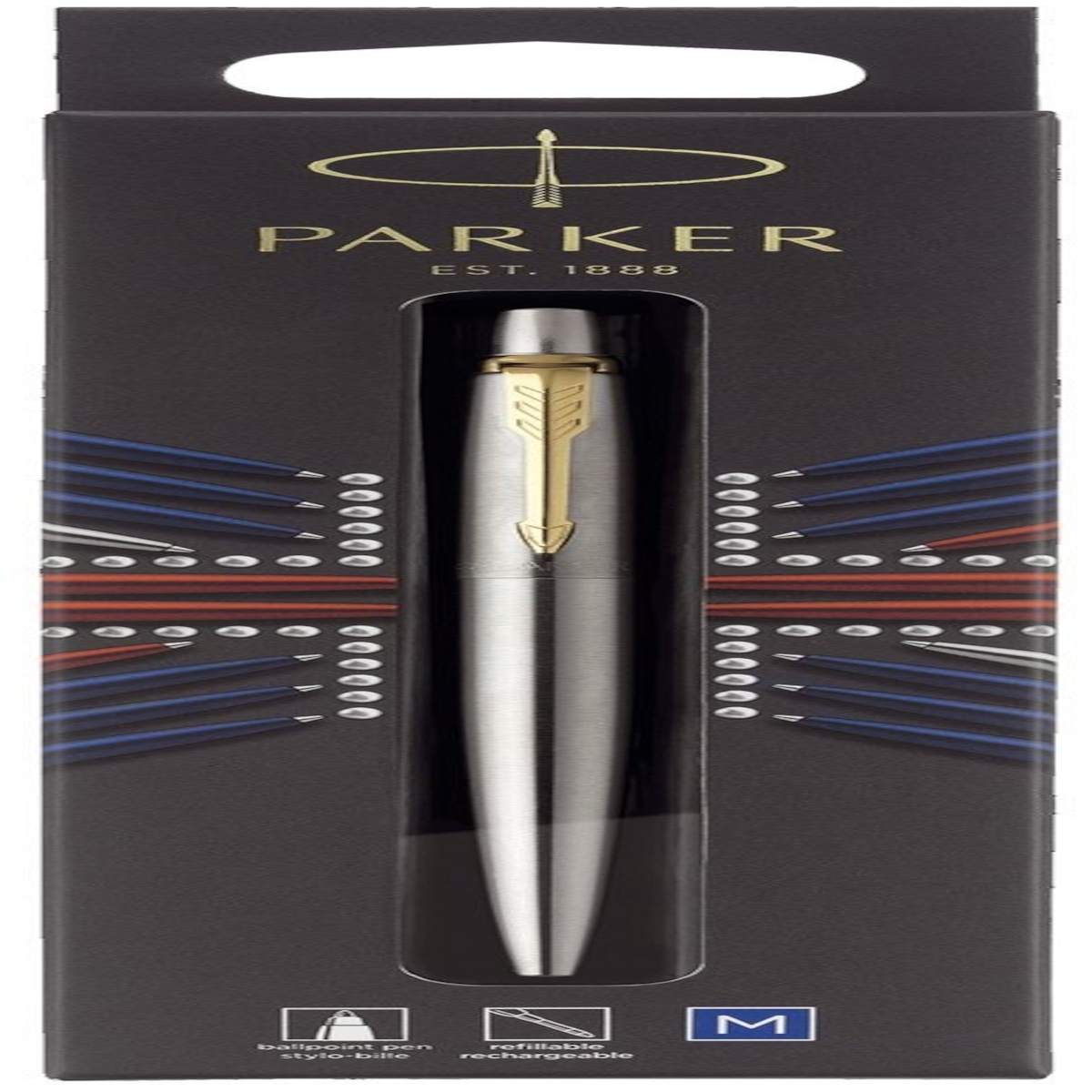 Parker Jotter Kugelschreiber | Edelstahl mit Goldzierteile | Mittlere Spitze | Blaue Tinte | Geschenkbox