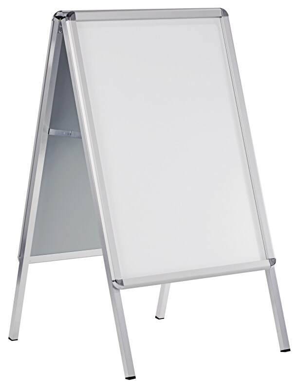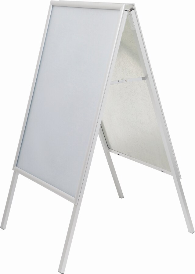 Kundenstopper „Eco“, 35 mm Profil, regenwasserfest silber eloxiert | DIN A1 (594 x 841 mm) | Polystyrolrückwand