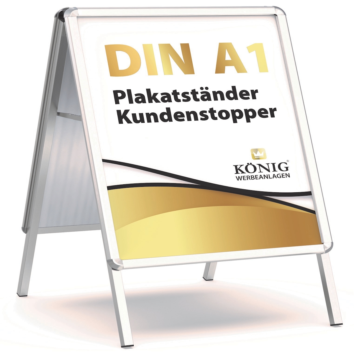 Kundenstopper DIN A1 Silber – Wetterfester Plakatständer für Außenbereich, beidseitig nutzbar, klappbar, stabile Aluminium-Ausführung für We...