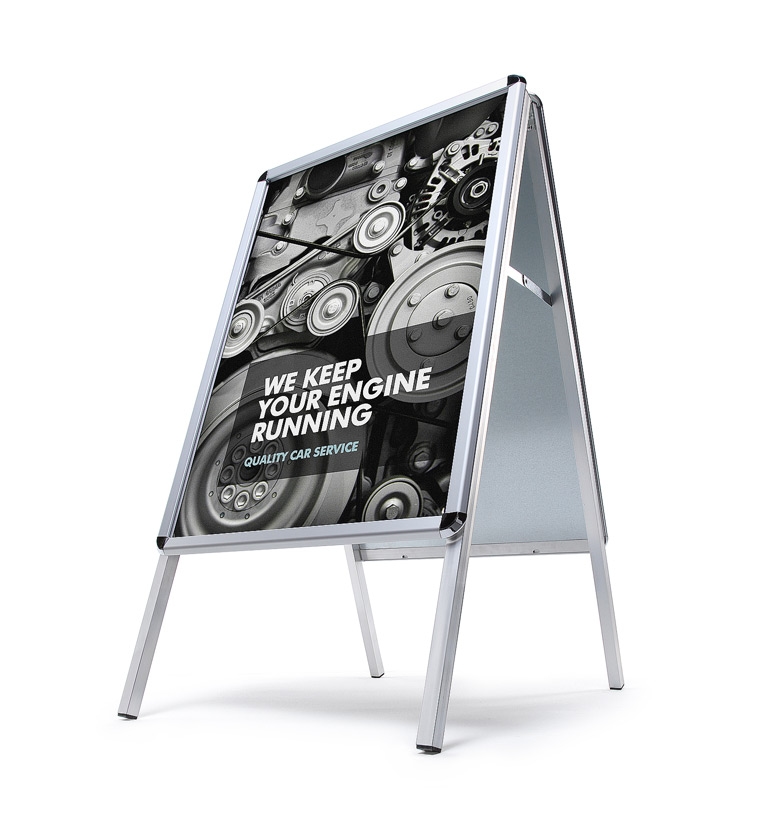 Kundenstopper, Aluminium silber eloxiert, DIN A1, beidseitig Klapprahmen 32 mm, wetterfest