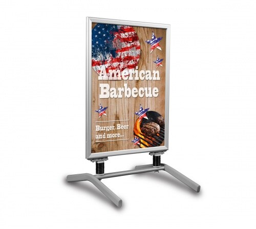 Kundenstopper, Aluminium silber eloxiert, DIN A1, beidseitig Klapprahmen 32 mm, wetterfest