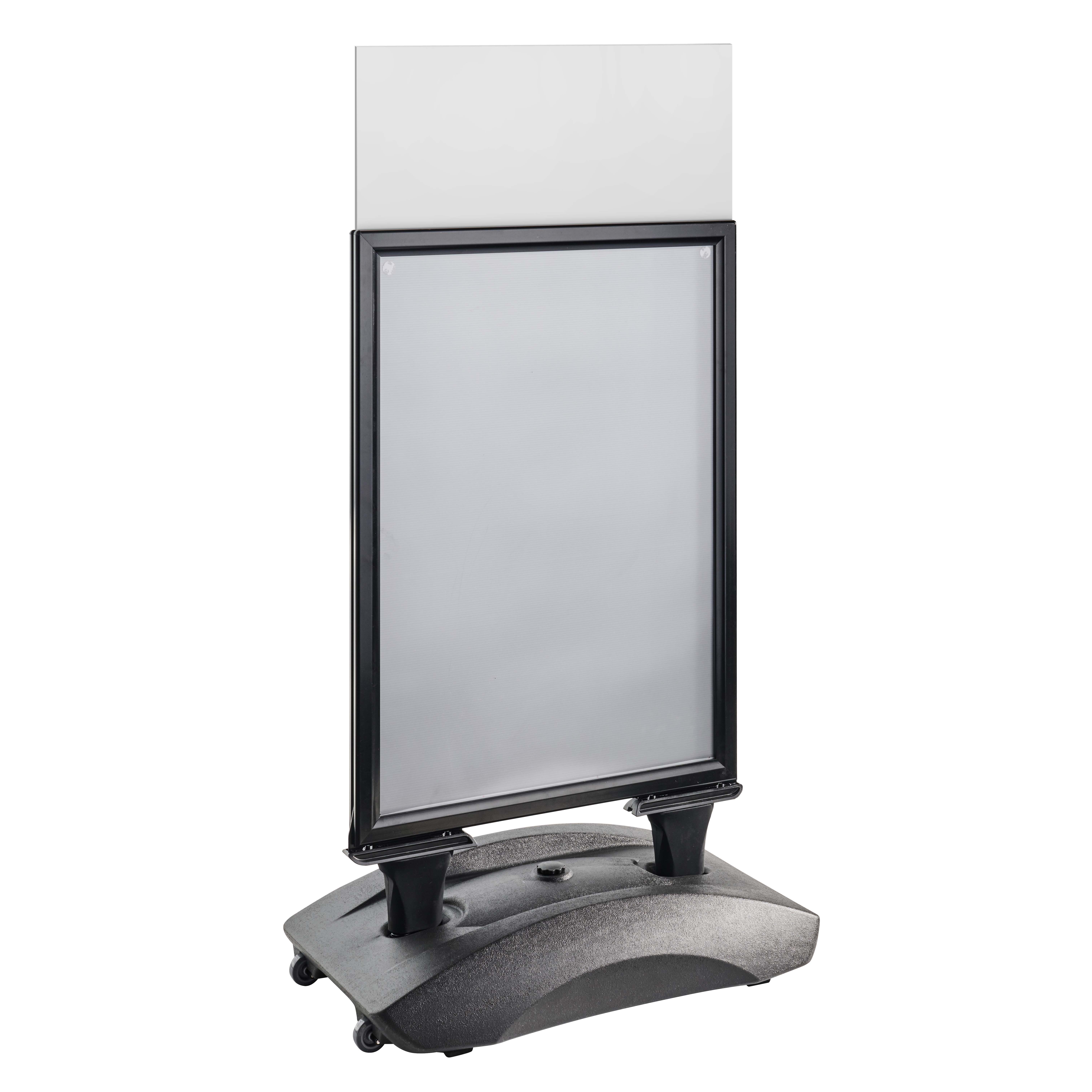 Kundenstopper STORM-STOP PRO A1 mit Topschildaufnahme, schwarz mit unbedrucktem Topschild, Aluminium