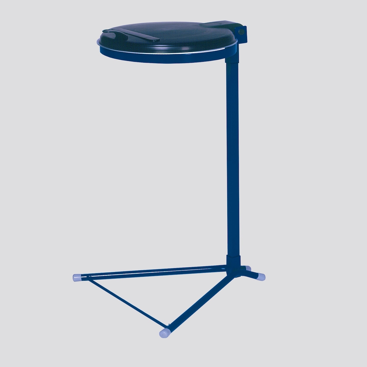 PROREGAL Robuster Abfallsammler mit Kunststoff-Deckel | mit Standfuß | HxBxT 98x50x48cm | Stahl | Blau-Schwarz | Mülleimer