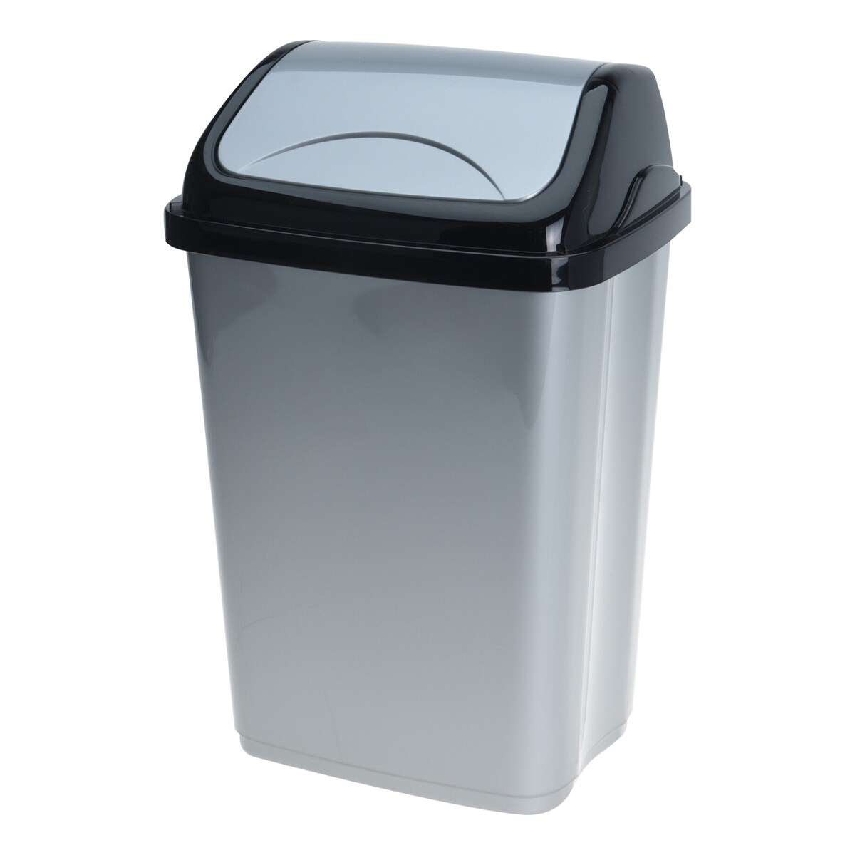 60-Liter-Kunststoff-Mülleimer mit Schwingdeckel - Schwarz/Silber