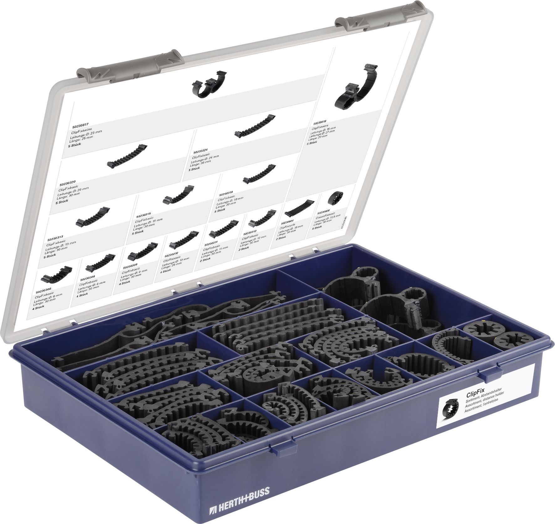 Herth + Buss Abstandshalter-Sortiment in Kunststoffbox, Inhalt 62 St., für Schläuche als Leitungshalter, Distanzausgleich und Geräuschdämpfung, 54 230
