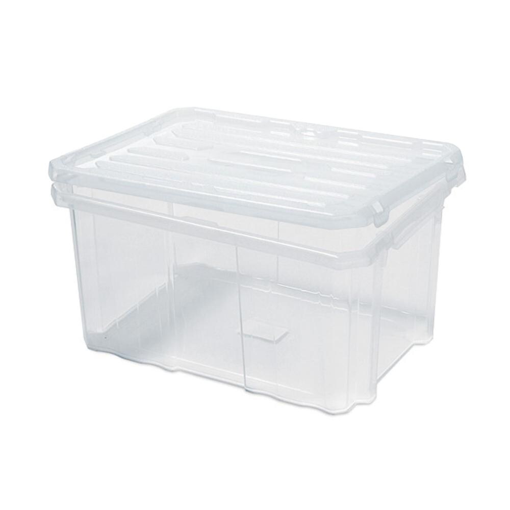 Mehrzweck Aufbewahrungsbox mit Deckel | Transparent | HxBxT 26x60x40cm | 55 Liter | Lagerkiste, Transportbox, Stapelbox, Kunststoffkiste