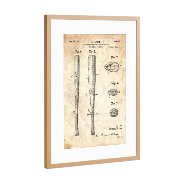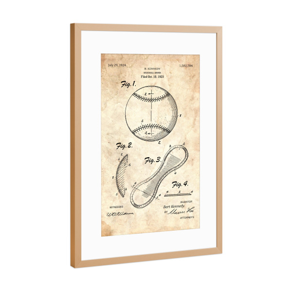 Poster mit Rahmen Kupfer "Baseballschläger Patent (Antik)" artboxONE - Sport - Sport,Baseball,Vintage,Patent,Usa,Fitness