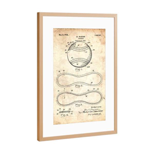 Poster mit Rahmen Kupfer "Baseball Patent (Antik)" artboxONE - Sport - Sport,Baseball,Vintage,Retro,Patent,Blaupause,Entwurf,Usa,Fitness,America