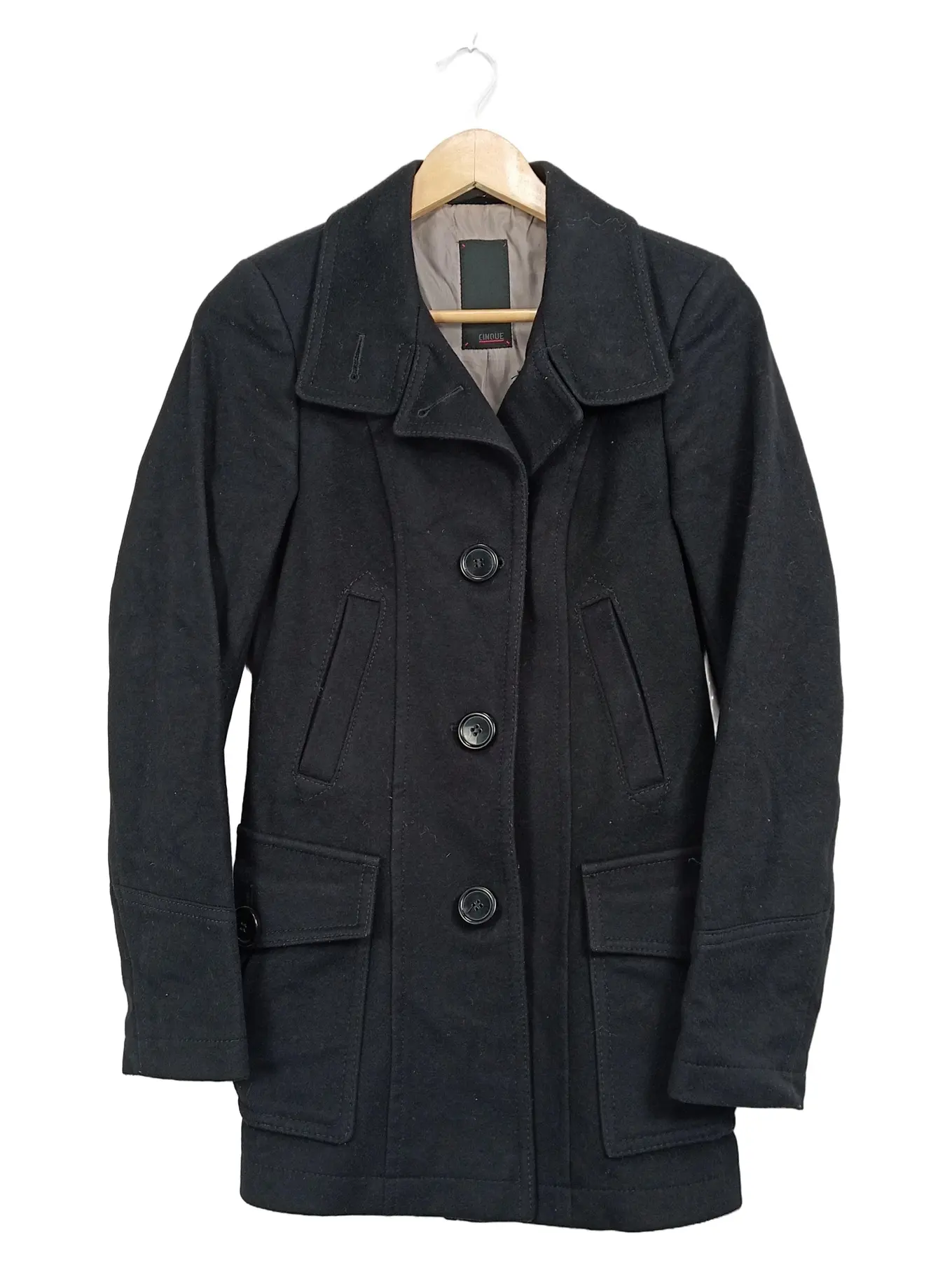 CINQUE Damen Wollmantel Kurzmantel Gr. 38 Schwarz Klassisch
