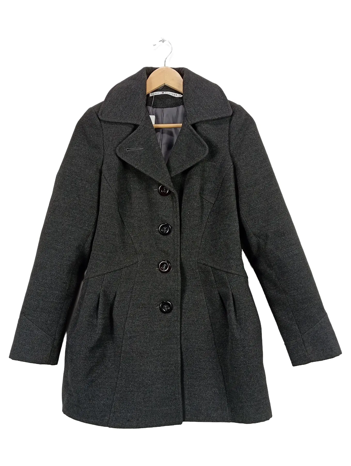 TOMMY HILFIGER Damen Wollmantel Kurzmantel Gr. 38 Grau Meliert Klassisch
