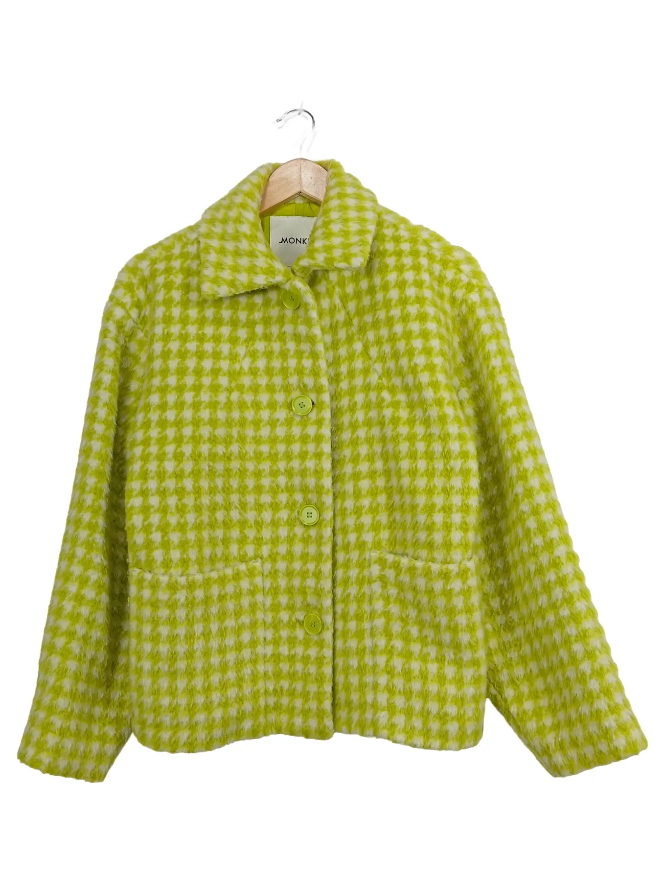 MONKI Übergangsmantel Damen Kariert Kurzmantel Gr. 34/XS Gelb Freizeit