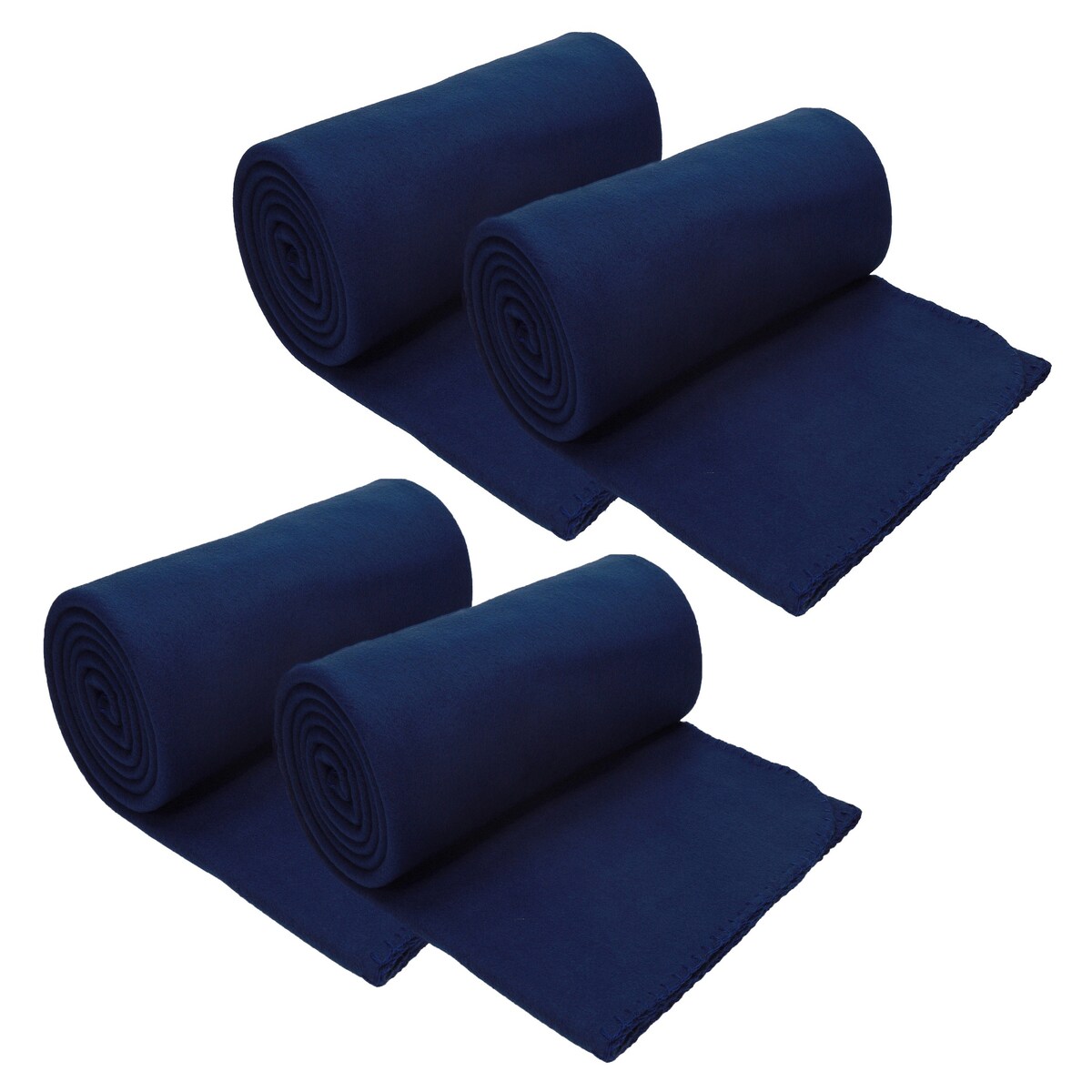 Betz 4 Stück Fleecedecken Kuscheldecken Größe 130x170 cm Farbe dunkelblau