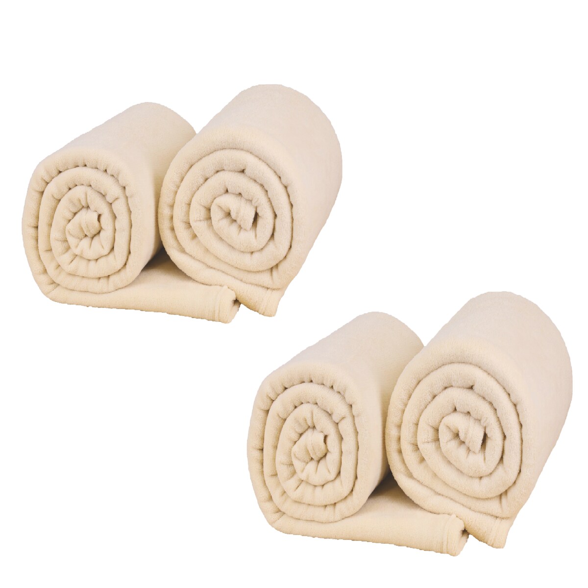 Betz 4 Stück Fleecedecken Kuscheldecken Größe 130x170 cm Farbe creme