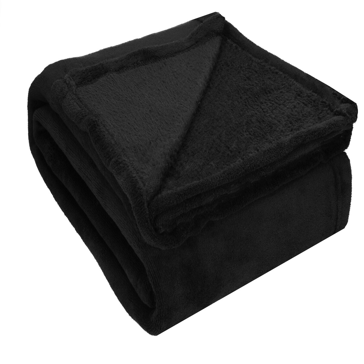 Betz 4 Stück Fleecedecken Kuscheldecken Größe 130x170 cm Farbe schwarz